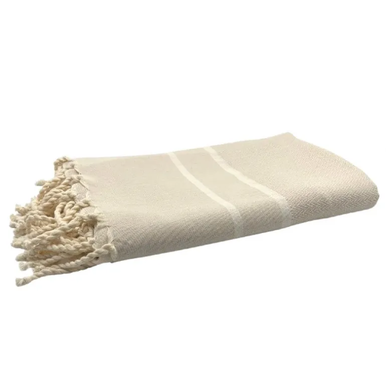 Beige & hvid stribet Hamam håndklæde, 105×200 cm