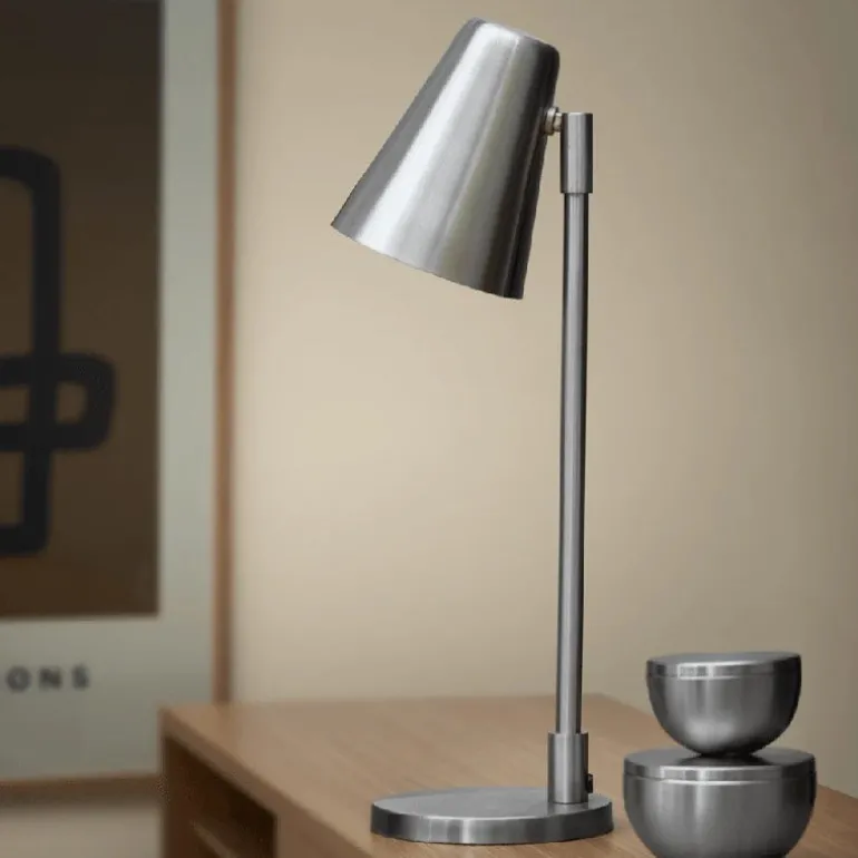 Ramo bordlampen fra H. Skjalm P. er en smuk og enkel bordlamper, som giver et varmt og behageligt lys. Det klassiske design gør den perfekt som lyskilde på skrivebordet, som natlampe på sengebordet eller som læselys ved sofahjørnet. Vælg i mellem stål og mat messing.