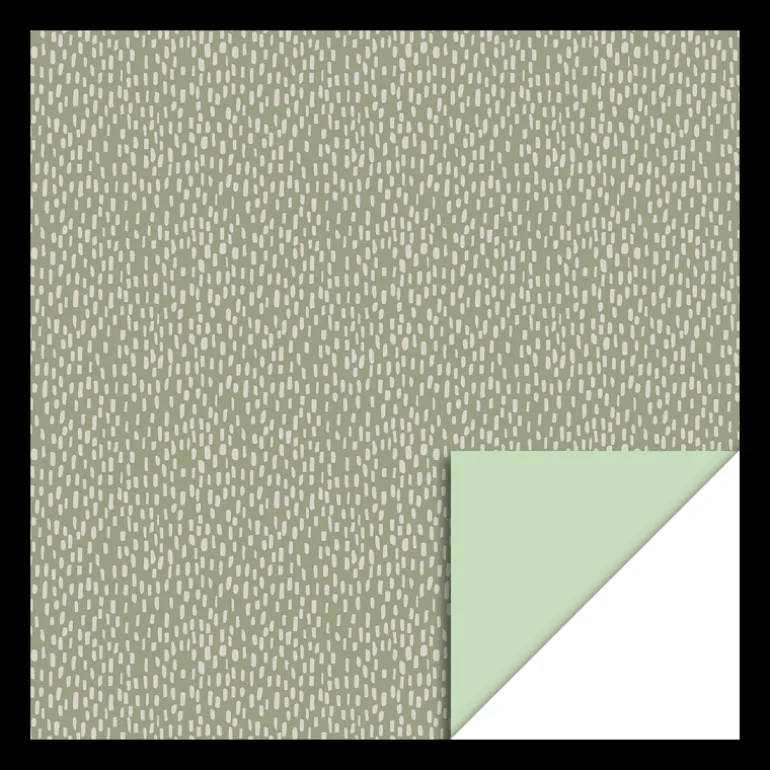 Fint gavepapir med små beige gnistre på en sart lysegrøn baggrund. Bagsiden er colysegrøn og kan derfor sagtens vendes eller lav en lille fold, så det skaber et bånd med den skønne farve.