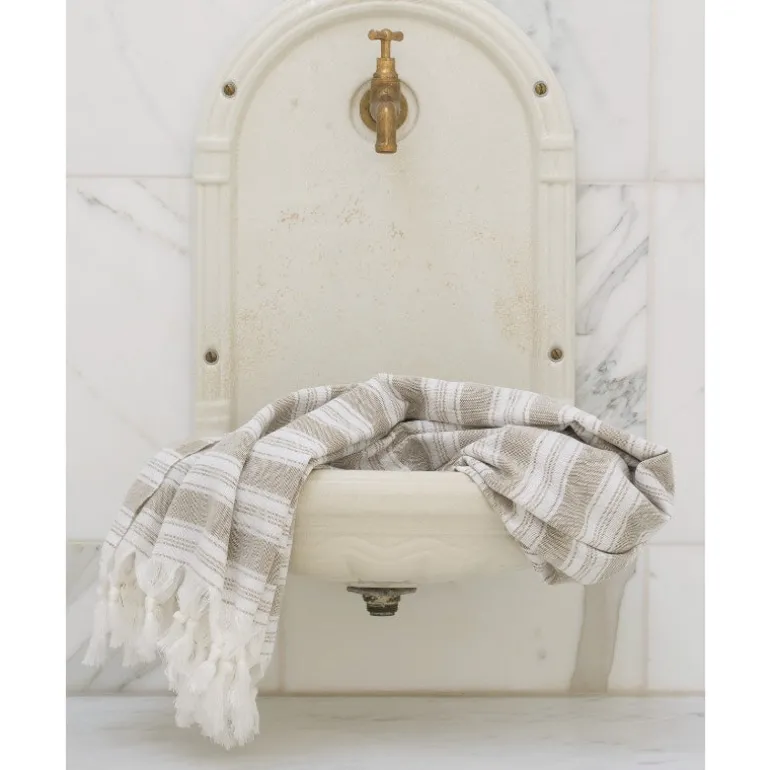 Dette smukke stribede Saray hammam håndklæde er inspireret af traditionelle hammam håndklæder, men en meget bedre kvalitet end originalerne.