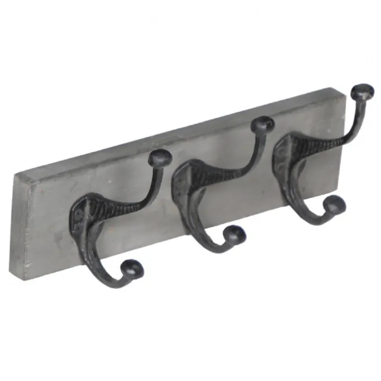 Knagerække med tre metalknager. De unikke knagerækker er lavet i Indien af genbrugstræ og med skønne metalknager. Passer perfekt til sommerhuset eller i en rustik indretning, der hvor man har brug ophæng af sine jakker eller i køkkenet til viskestykker f.eks.