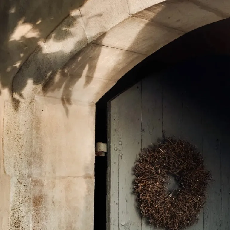 Meget dekorative krans lavet af tørrede grene, – kransen kan både bruges inde og ude.