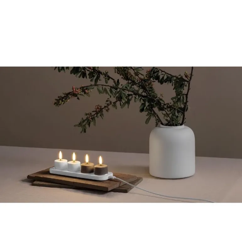 LED genopladelige fyrfadslys med en flot 3D flamme, – du behøver ikke længere batterier, men kan blot oplade dine lys. Vi sælger en en oplader der gør det let for dig, at genoplade dine fyrfadslys.