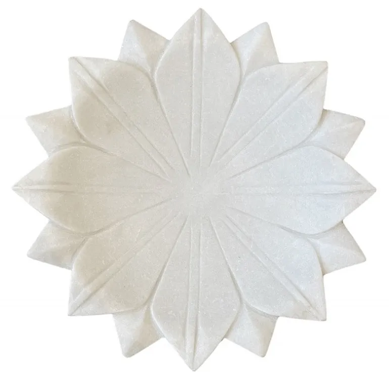 Charmerende & unikt indisk lotusfad i lys marmor, anvendeligt både i køkken, stue og bad!