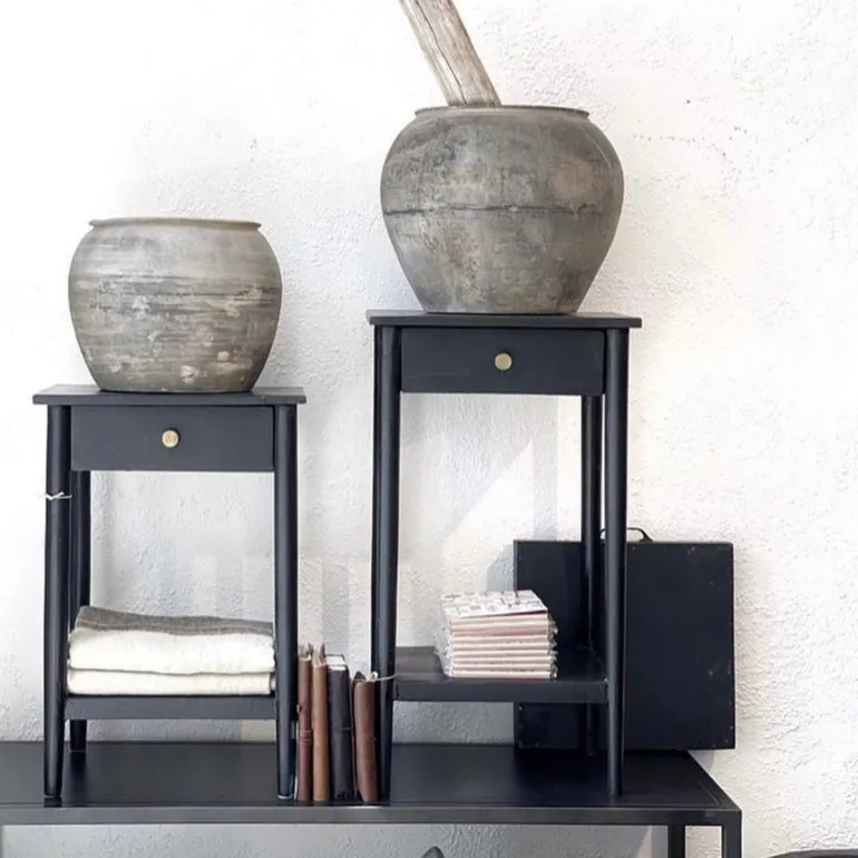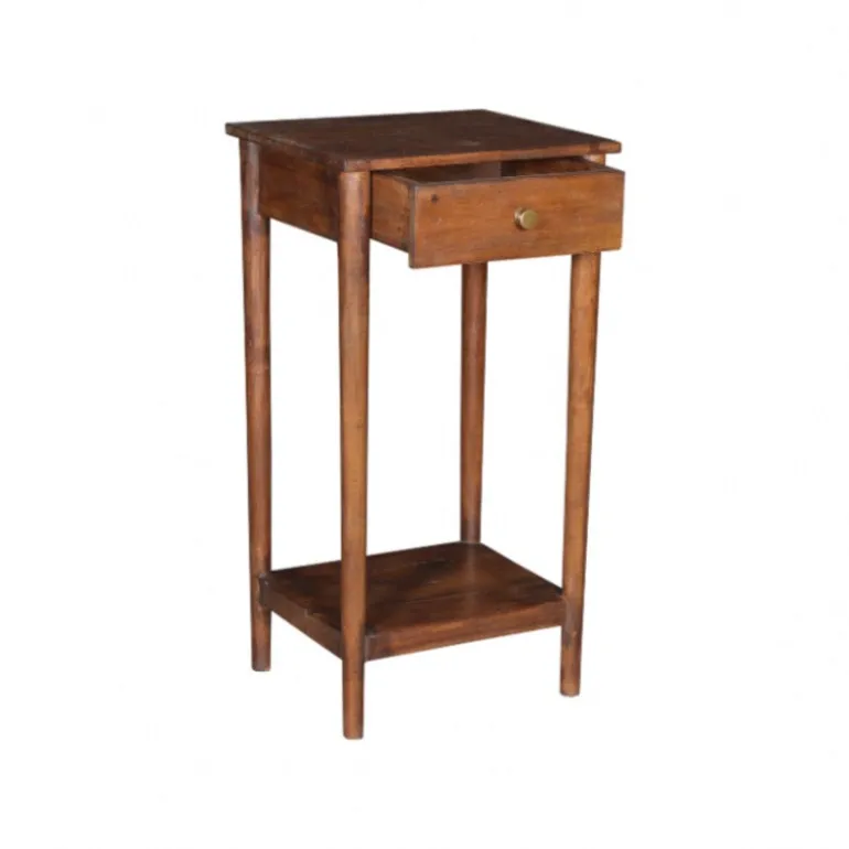 Fint natbord/ sidebord produceret i genbrugstræ. Ideelt ved siden af sengen eller sofaen. Passer så fint til den lille entre med plads til nøgler mm. i skuffen.