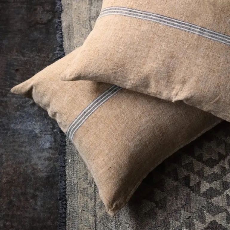 Skønt pudebetræk i en gullig sand farve med grå-hvid stribe henover midten. Pudebetrækket er i 100% hør og lukkes med lynlås. Findes også i størrelse 50×90 cm