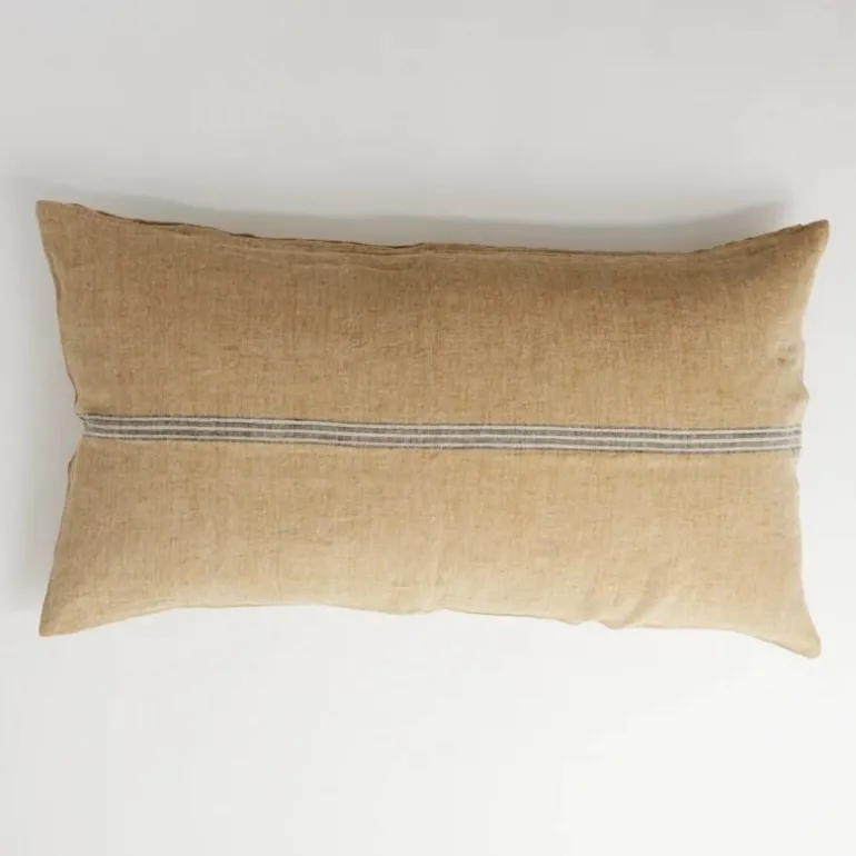 Skønt pudebetræk i en gullig sand farve med grå-hvid stribe henover midten. Pudebetrækket er i 100% hør og lukkes med lynlås. Findes også i størrelse 40×60 cm