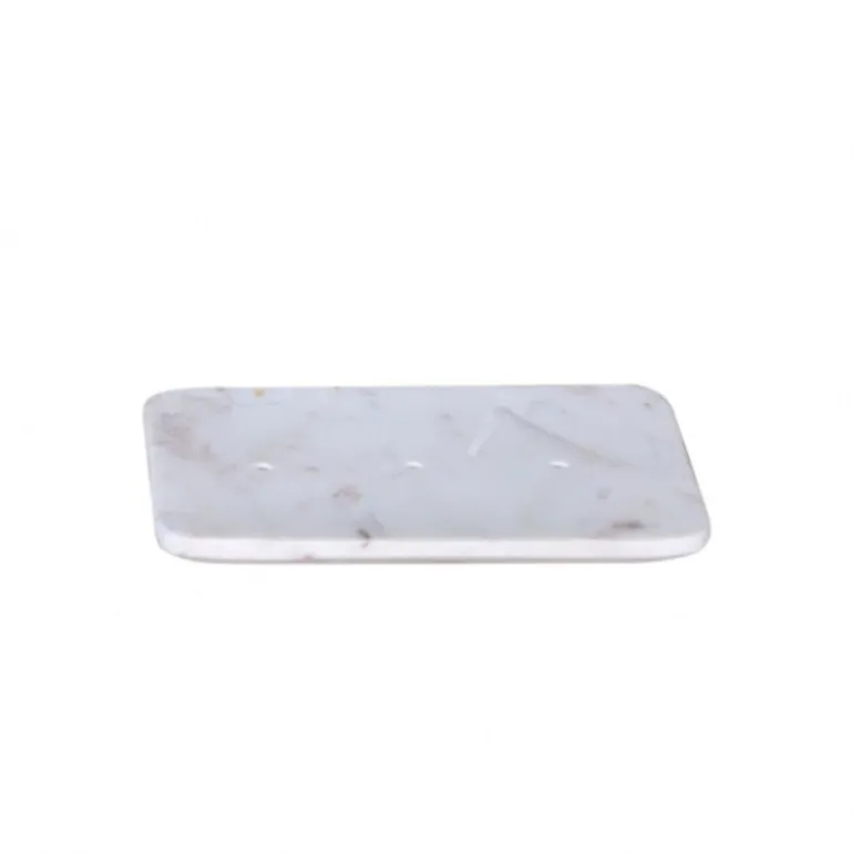 Skøn sæbeskål i hvid marmor med tre borede huller, så vandet kan løbe fra.
