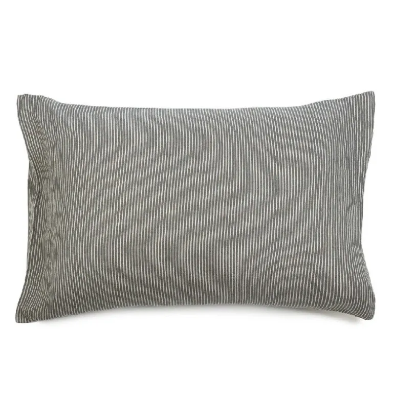 Twill vævet pudebetræk i 100% belgisk hør, med all-over striber i hvid og grønlige (farven hedder River) farver.