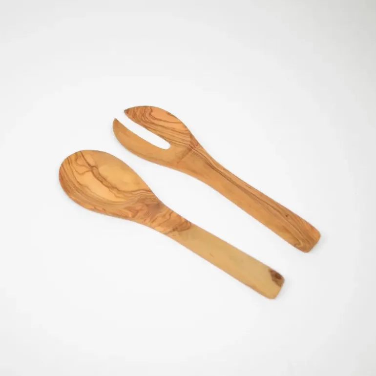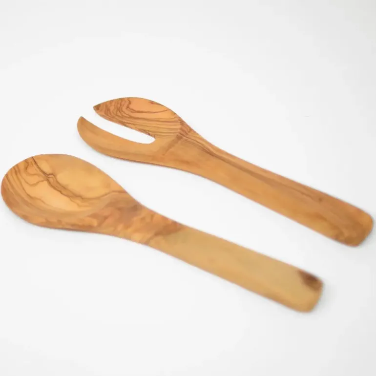 Lækkert salatbestik til dagens grønne salat – i naturfarvet oliventræ anbefaler at det vaskes i hånden!