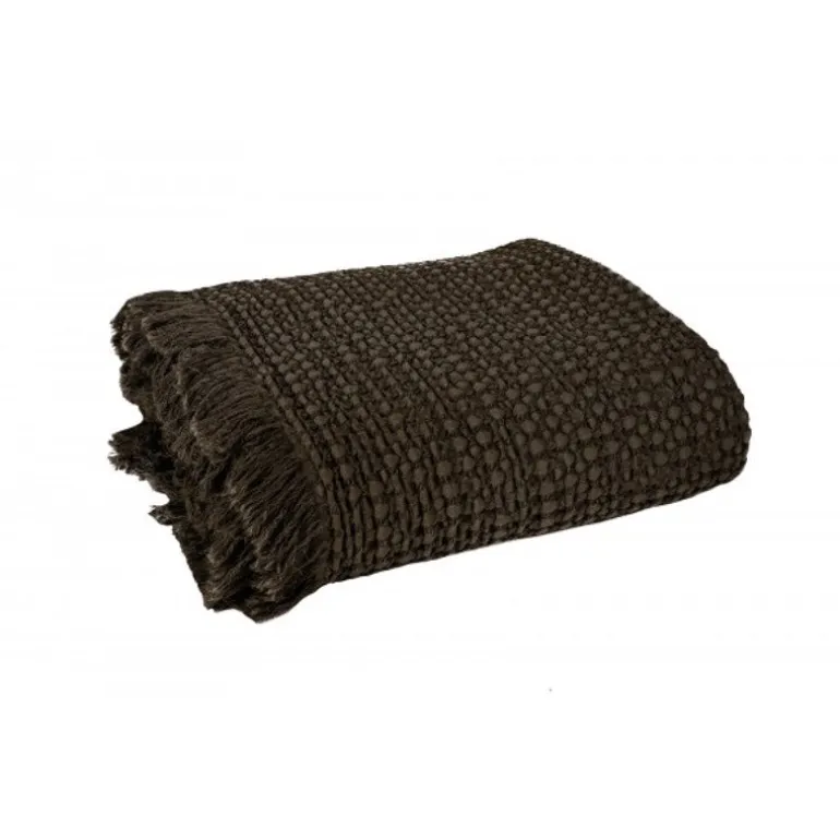 Lækkert sengetæppe i blødt vaflet bomuld, i en lækker brun farve.