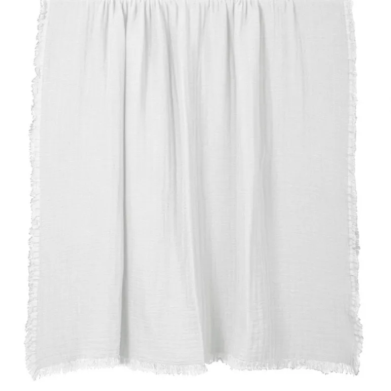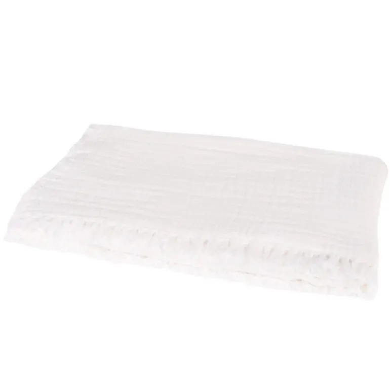Lækkert vaflet sengetæppe med frynser rundt i hele kanten.