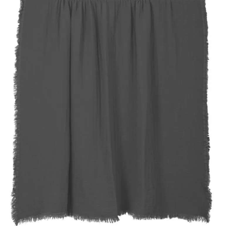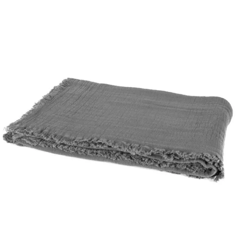 Lækkert vaflet sengetæppe med frynser rundt i hele kanten.
