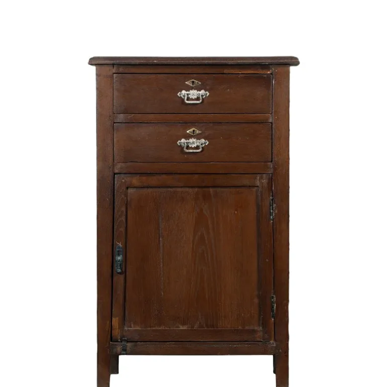 Dette gamle unika skab er restaureret. Skabet har to hylder, hvis man tælle bunden med og to skuffer.