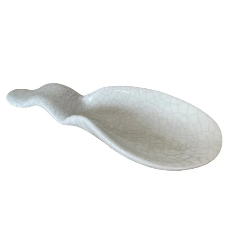 Skøn og sjov formet keramik ske til alt suppe, flødeskum eller desserter, fra det franske firma Jars og går under navnet DashiI Kome Quartz Craquele. Skeen er i aske-emaljeret stentøj, der giver de grålige krakeleringer i en råhvid overflade og sammensat af naturlige og holdbare materialer, ikke-porøse, vil ikke chip og bly- og cadmiumfri komponenter. Den er håndlavet og der kan derfor være små variationer i farve eller form.