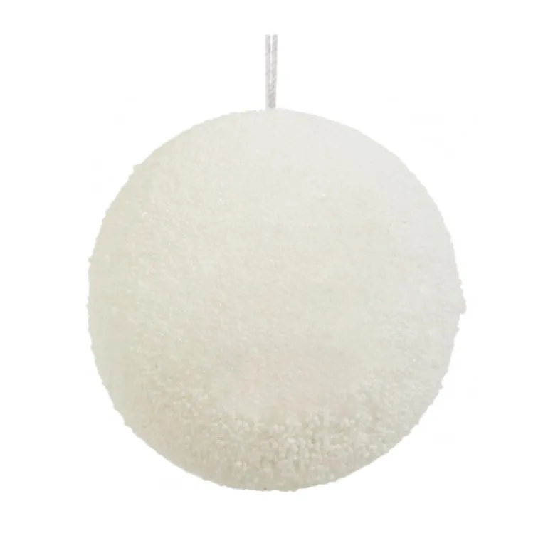 Hvid glassnebold. Kan hænges på juletræet eller i vinduet med tilhørende sølvsnor.