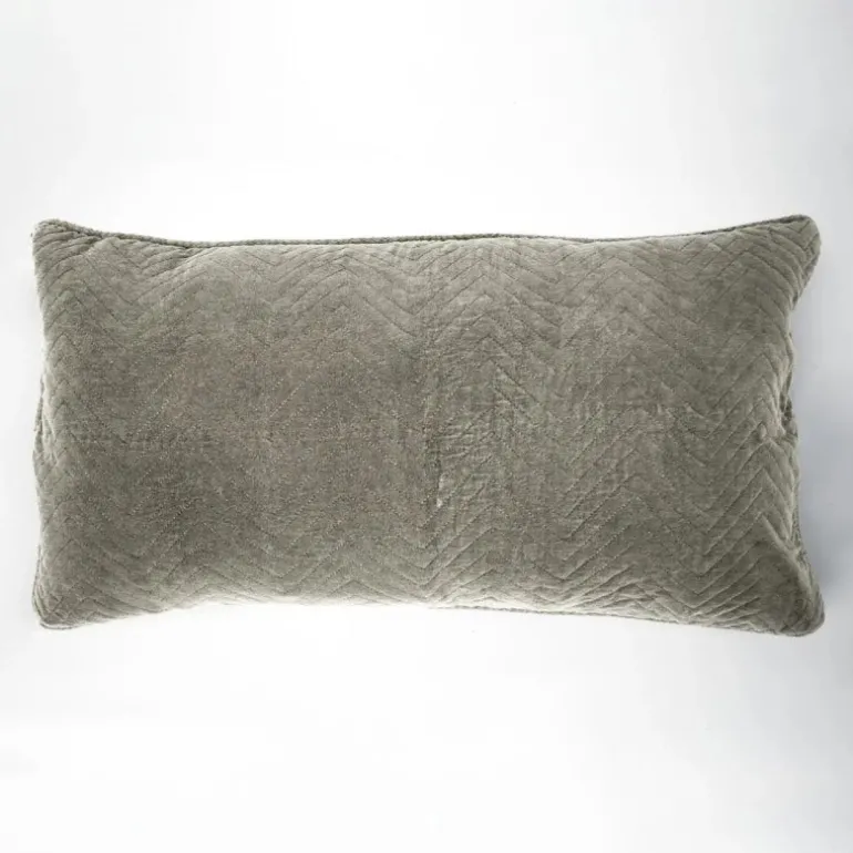 Smukt pudebetræk i fin grå velour med quiltet mønster. Bagpå har betrækket sløjfelukning og bagside er syet i en lys grå bomuld.