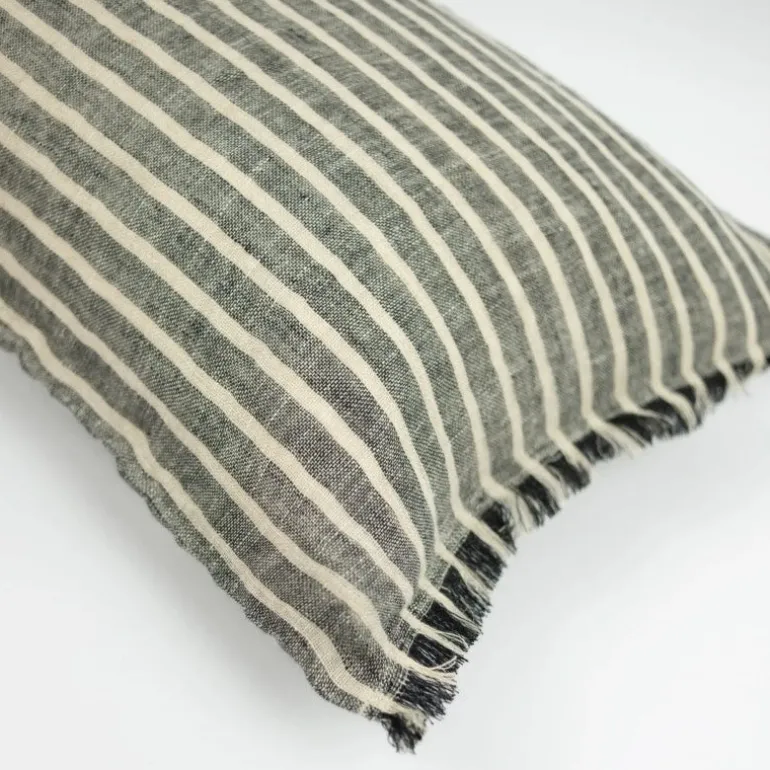 Super fint sort og beige stribet hør pudebetræk. Dette pudebetræk kan give et lidt cool look til en klassisk sofa.