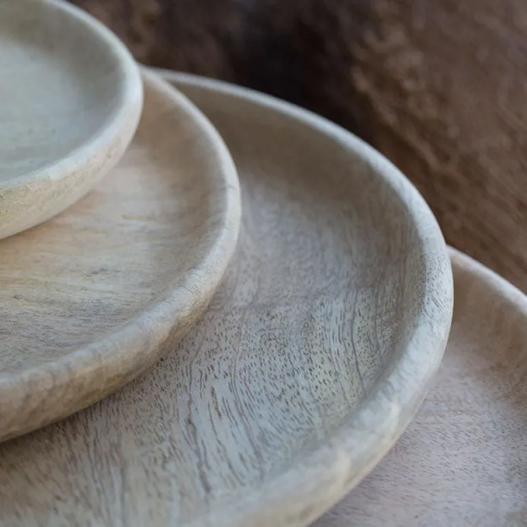 Asiet, lanternebund, bordskåner eller underkop – mulighederne er mange. Den er i lys mangotræ, “Food safe” og fås i fire størrelser. Se de tre andre størrelser under vores kategori med tallerkener.