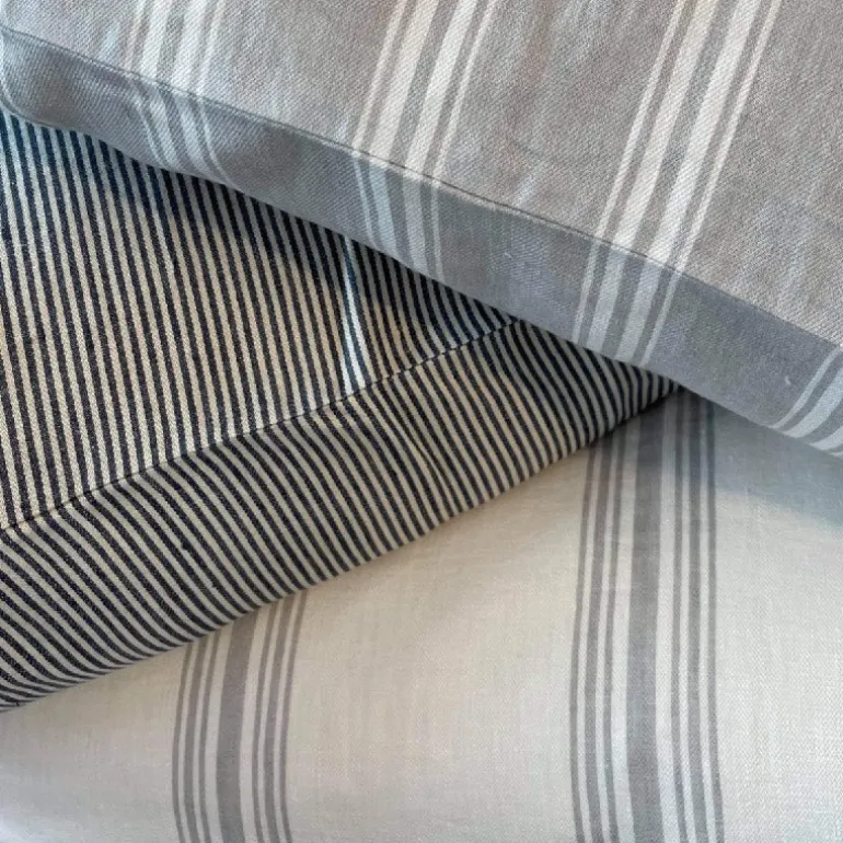 Fint pudebetræk 100% hør, i lys grå farve med råhvide striber.