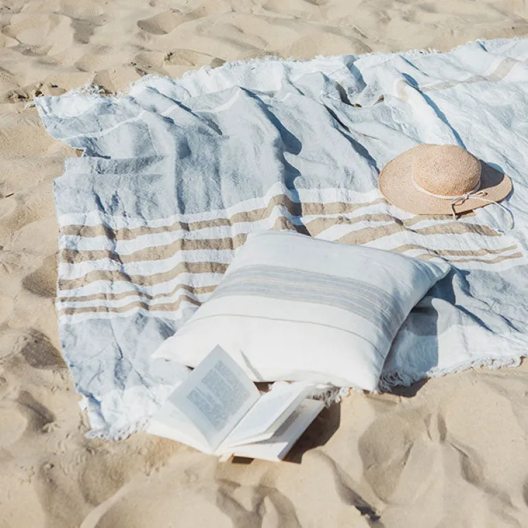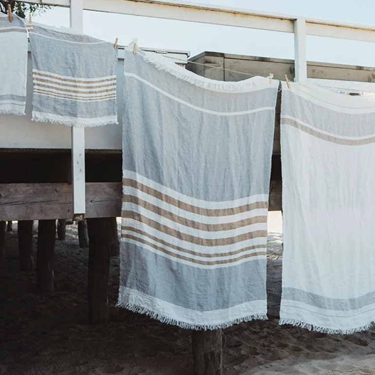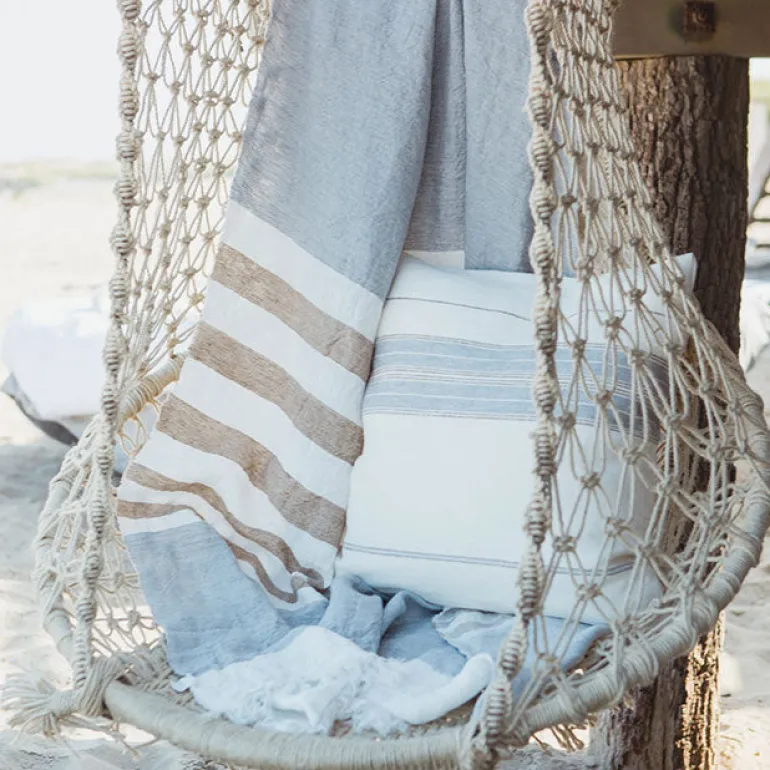 Smukt throw af belgisk hør i flotte afstemte farver.