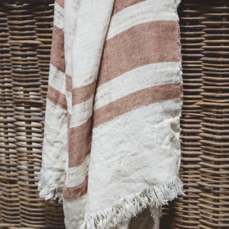 Smukt throw af belgisk hør i flotte afstemte farver.