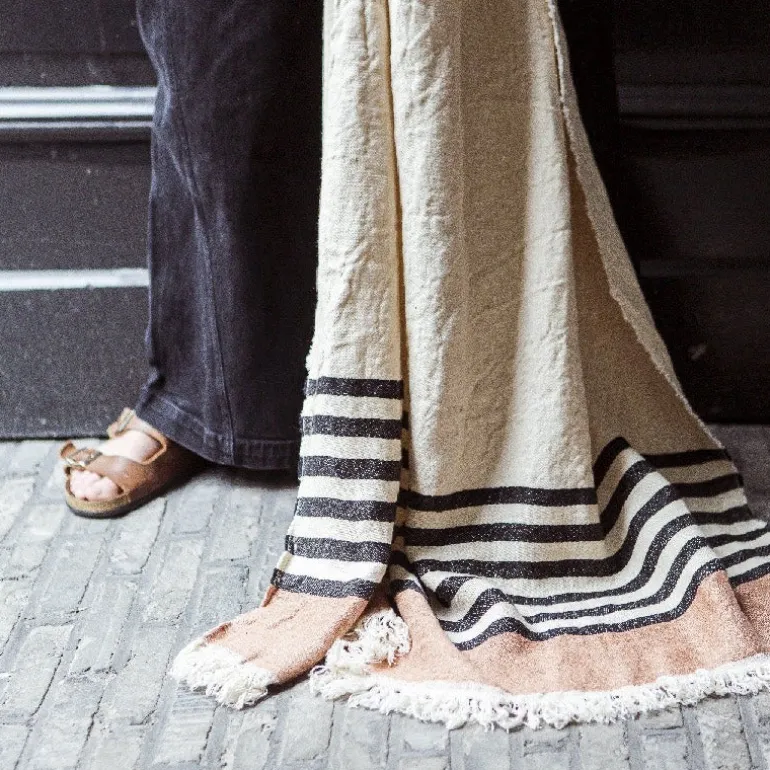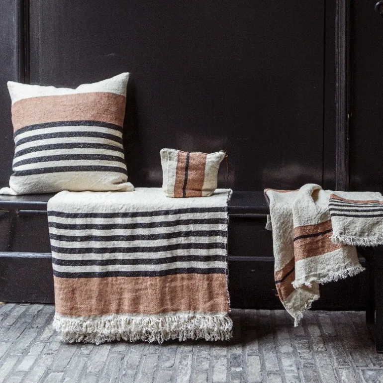 Smukt throw af belgisk hør i flotte afstemte farver.