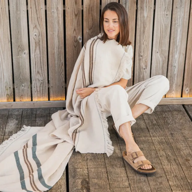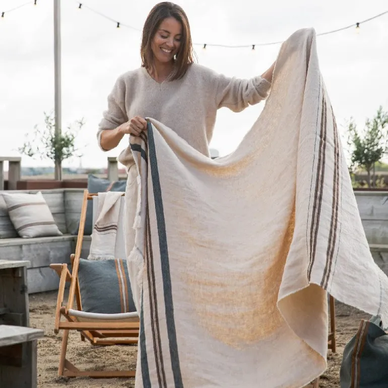 Smukt throw af belgisk hør i smukke afstemte farver.