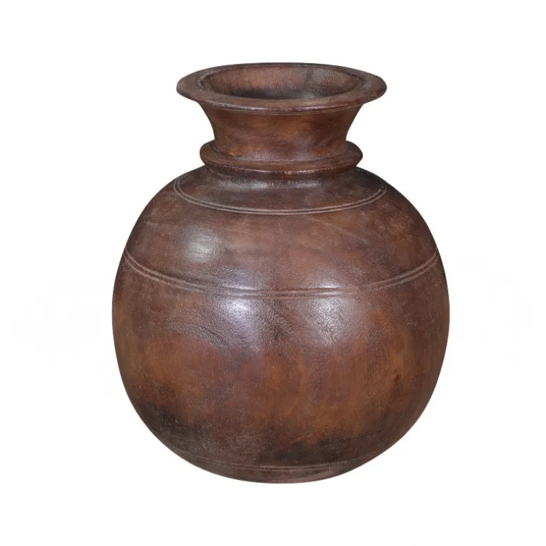 Smuk rustik trævase med en rundet form. Smuk med nogle tørrede grene i eller bare som dekoration i sig selv. Hvis man vil have levende blomster i, anbefaler vi at man sætter et glas ned i til vandet.