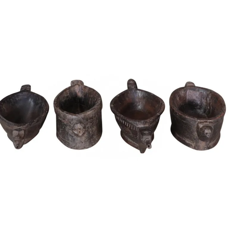 Gamle unikke træ skåle fra Indien, oprindeligt brugt til at morte krydderier til te.