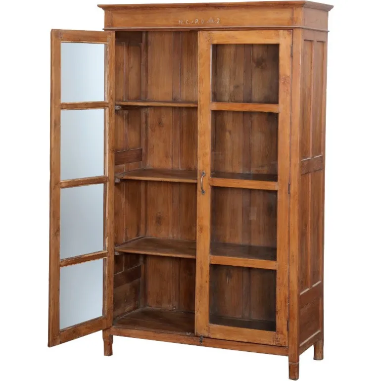 Dette fine vitrineskab med glas låger er et gammelt unika skab, der er restaureret. Skabet har fire hylder hvis man tæller bunden med. Skabet er som skabt til opbevaring af alt fra porcelæn til linned, bøger eller dit hjemmekontor.