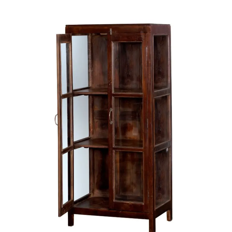 Dette fine vitrineskab med glaslåger er et gammelt unika skab, der er restaureret. Skabet har tre hylder hvis man tæller bunden med. Skabet er som skabt til opbevaring af alt fra porcelæn til linned, bøger eller dit hjemmekontor.