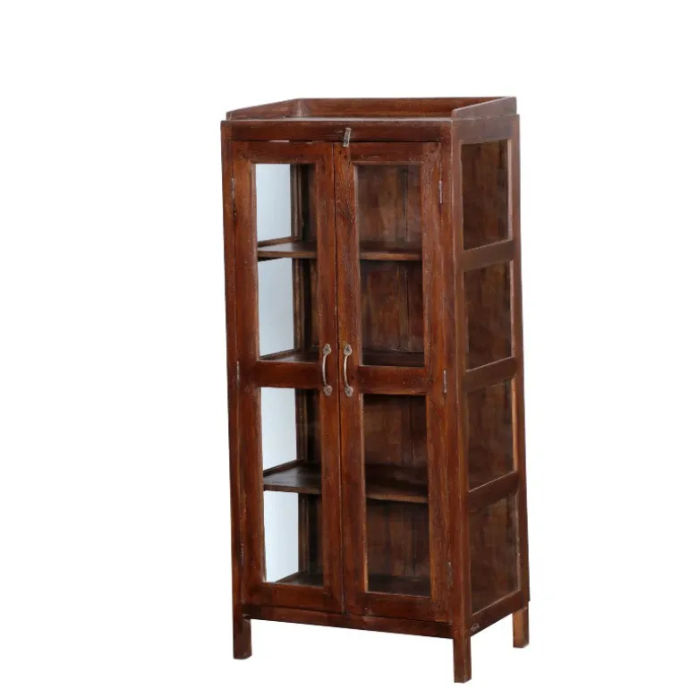 Dette fine vitrineskab med glaslåger er et gammelt unika skab, der er restaureret. Skabet har fire hylder hvis man tæller bunden med. Skabet er som skabt til opbevaring af alt fra porcelæn til linned, bøger eller dit hjemmekontor.