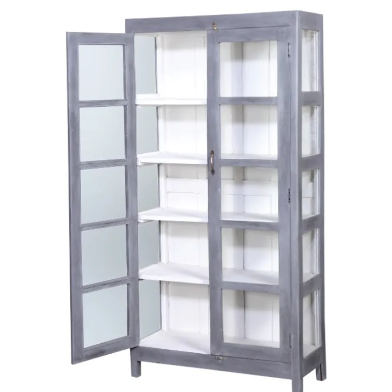 Dette fine vitrineskab med glas låger er et gammelt unika skab, der er restaureret. Skabet har fem hylder. Skabet er som skabt til opbevaring af alt fra porcelæn til linned, bøger eller dit hjemmekontor.