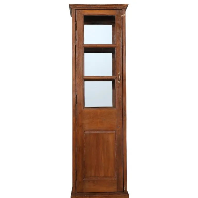 Det høje smalle vitrineskab er produceret af genbrugs teaktræ, det er perfekt til opbevaring for eksempel på et badeværelse.