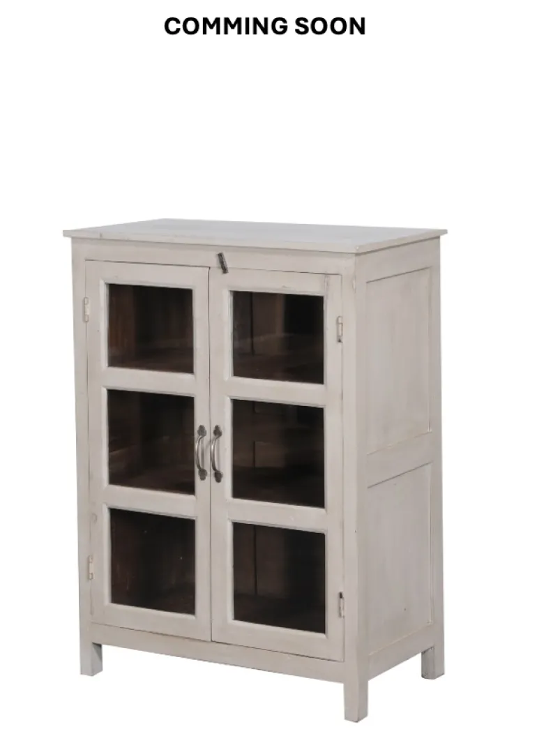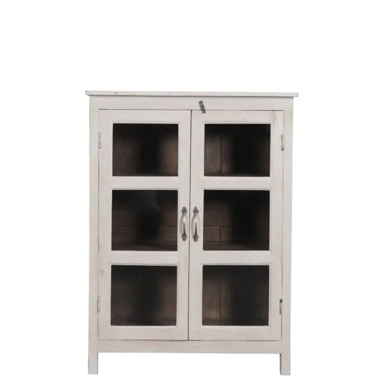 Dette fine vitrineskab med glas låger er et gammelt unika skab, der er restaureret. Skabet har tre hylder hvis man tæller bunden med. Skabet er som skabt til opbevaring af alt fra porcelæn til linned, bøger eller dit hjemmekontor.