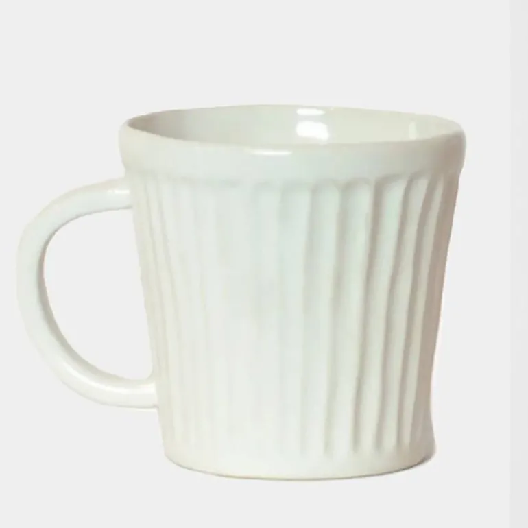 Fin kop i hvid glaseret stentøj keramik. Denne kop er håndmalet og udseende, farve og finish kan derfor variere fra kop til kop.