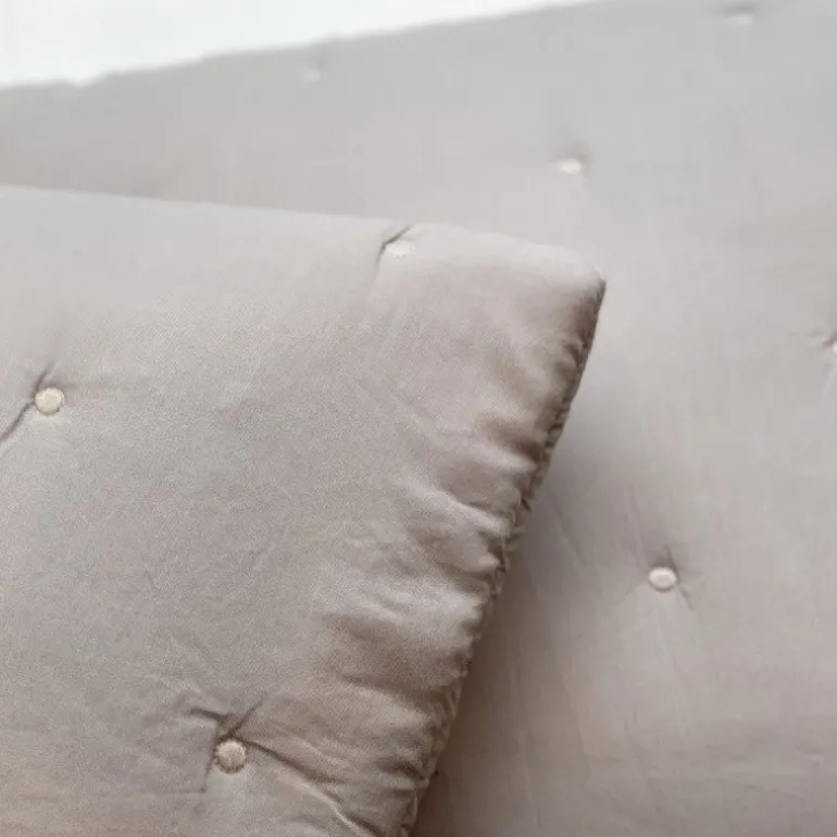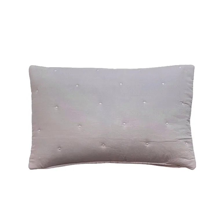 Enkelt, let håndquiltet pudebetræk i blød, vasket bomuldsvoile, vatteret med enkel polyester lag og med lynlås lukning.