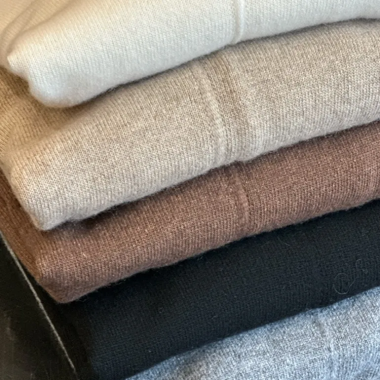 Cashmere blend strik med bred hals. Blusen er dejlig blød og findes i fem farver.