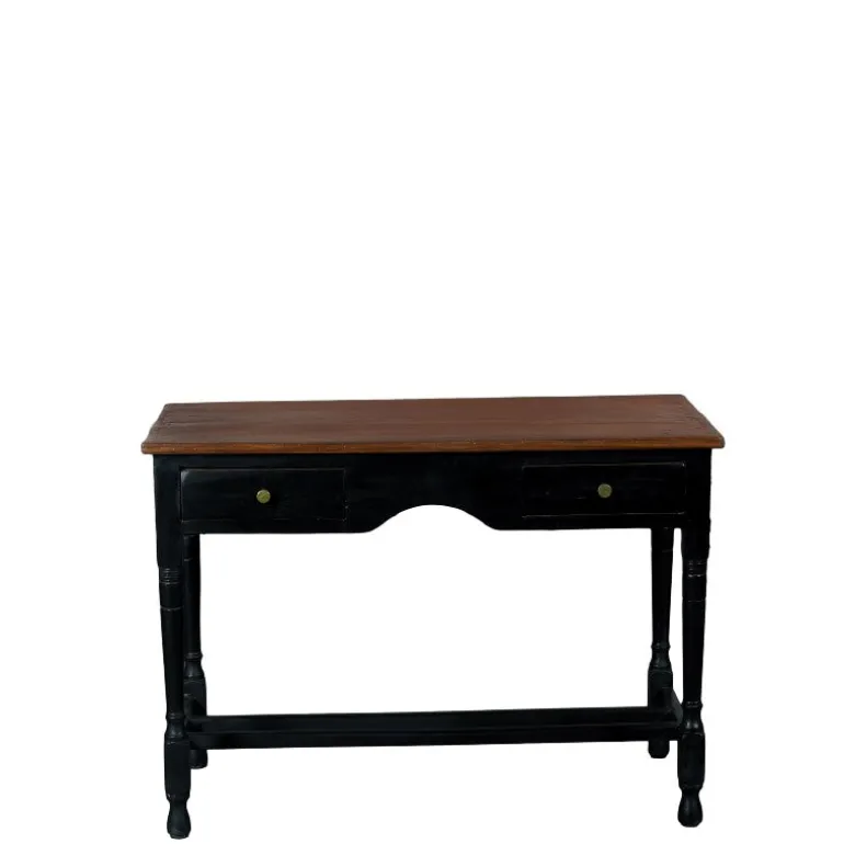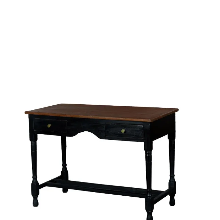 Gammelt istandsat skrive bord med to skuffer, perfekt til en hjemmearbejdsplads.