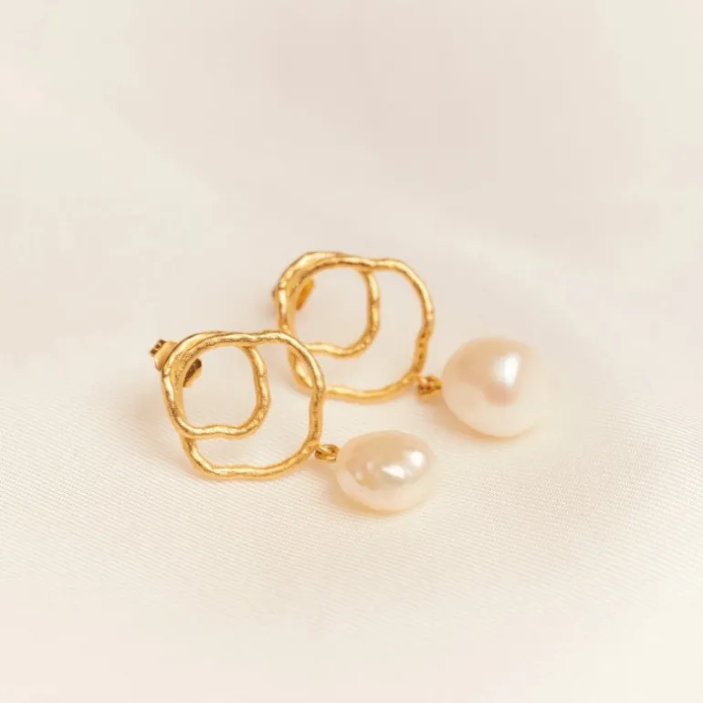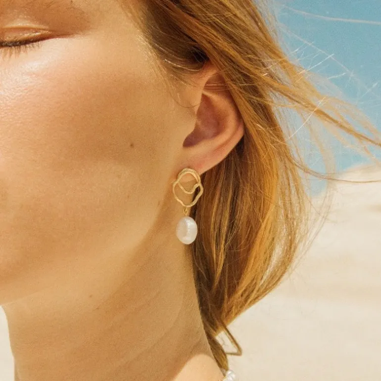 Célaphine – et navn, der fremkalder havets fortryllende stilhed, hvisket fra Aquazuran-folkets ældgamle læber, mens de lavede disse øreringe, en symfoni af perlemor og glitrende guld. Selve navnet er en hyldest til deres månebeskinnede guddom, Selá, en nattens gudinde, da hun kaster sit ømme lys som perler på det urolige hav.