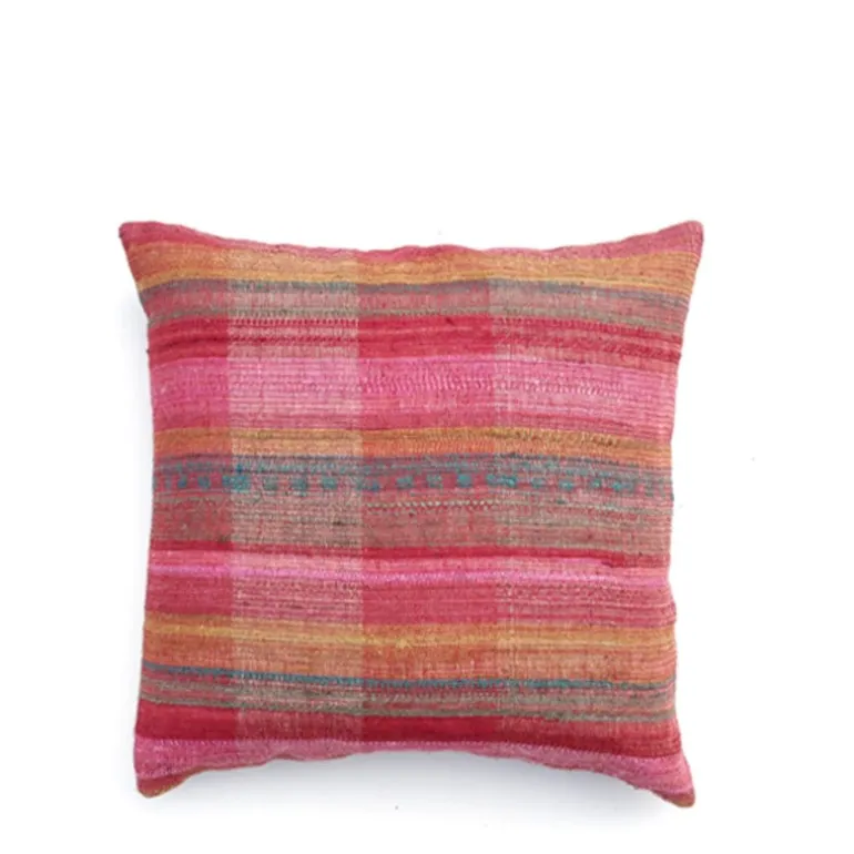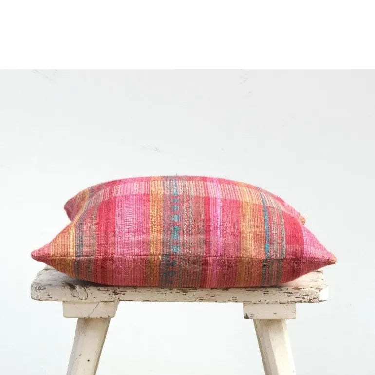 Den smukkeste hør og silke pude i skønne røde og pink nuancer