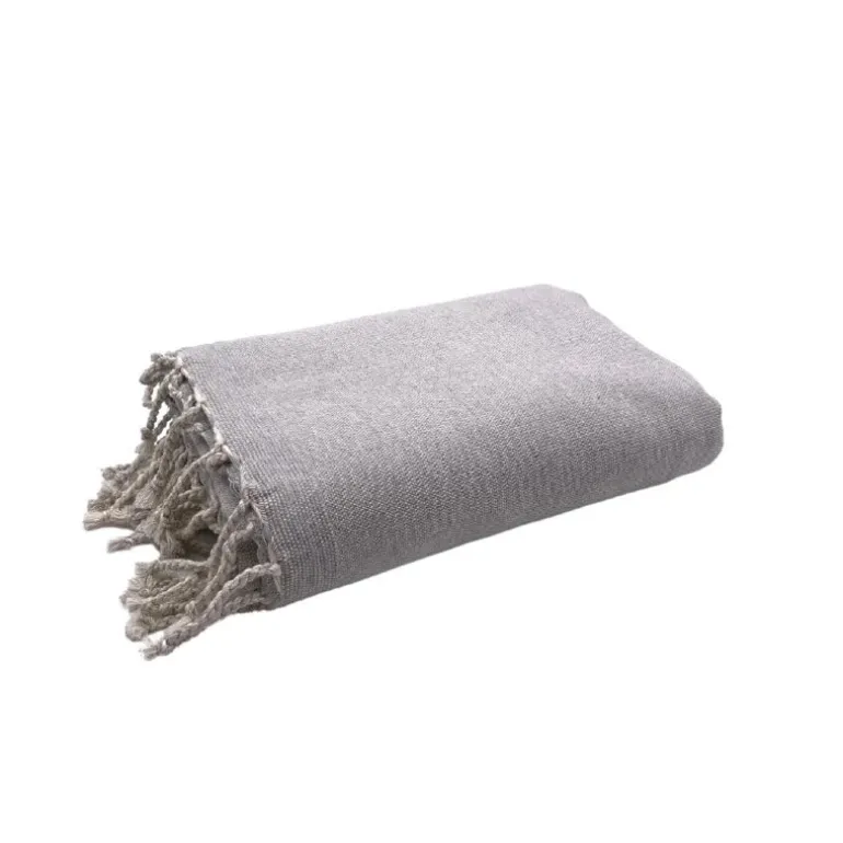 Ensfarvet gråt Hamam håndklæde med frotté, 200 cm