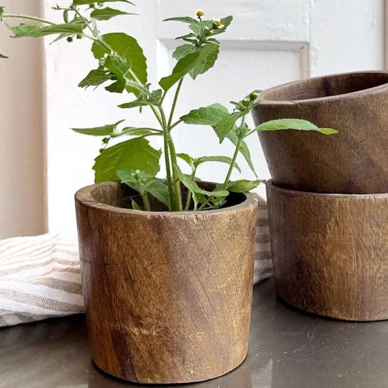 Unik krukke i træ, til krydderurterne i køkkenet, eller som et større saltkar.