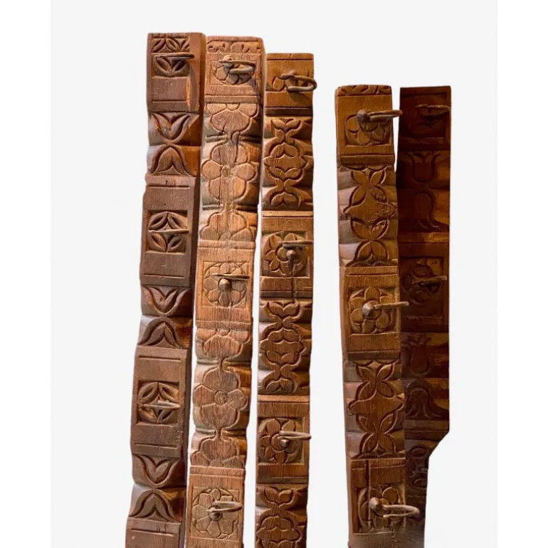 Knagerække lavet ud af gamle træpaneler fra Indien.