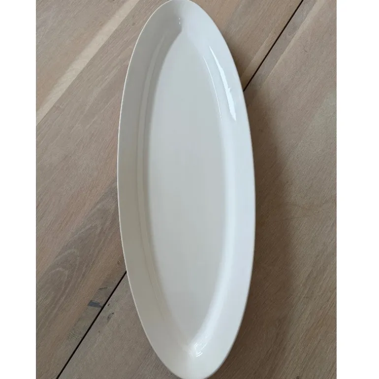 Stort ovalt hvidt keramik fad til skønne serveringer. Håndlavet og bæredygtigt produceret i et unikt klart design, med karakter og personlighed. Skøn til salater og varme retter på middagsbordet.