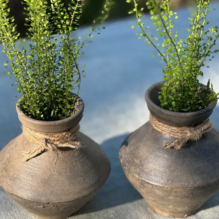 Sød lille lerkrukke eller vase. Krukken er ikke glaseret indvendig, så den skal stå på en underskål.