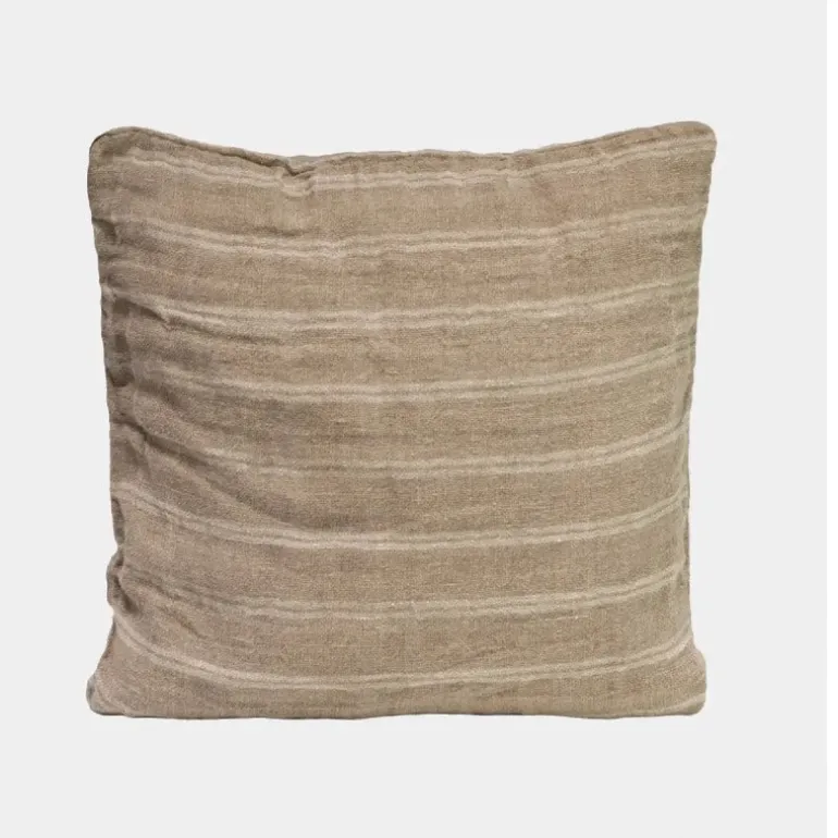 Hør pudebetræk med en lys stribe. Pudebetrækket lukker med lynlås.