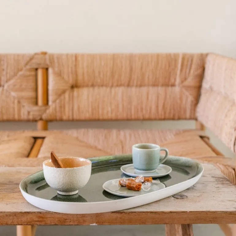 Smuk aflangt fad i …. keramik, fra det franske firma Jars – en smuk måde at servere salater f.eks. Fadet er håndlavet og der kan derfor være små variationer i farve eller form.