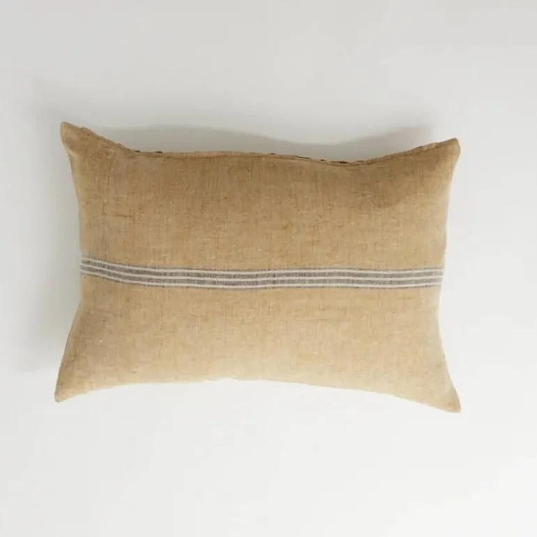Skønt pudebetræk i en gullig sand farve med grå-hvid stribe henover midten. Pudebetrækket er i 100% hør og lukkes med lynlås. Findes også i størrelse 50×90 cm